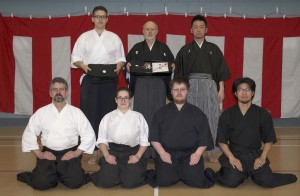 In this ceremony, Itoh Sensei presented three artifacts to the CIA President Denton Hewgill Sensei. Itoh sensei also granted Chris Tooley Sensei through a separate ceremony the right to wear montsuki and to recognize him officially as a qualified Iaidoka (iaido practitioner).