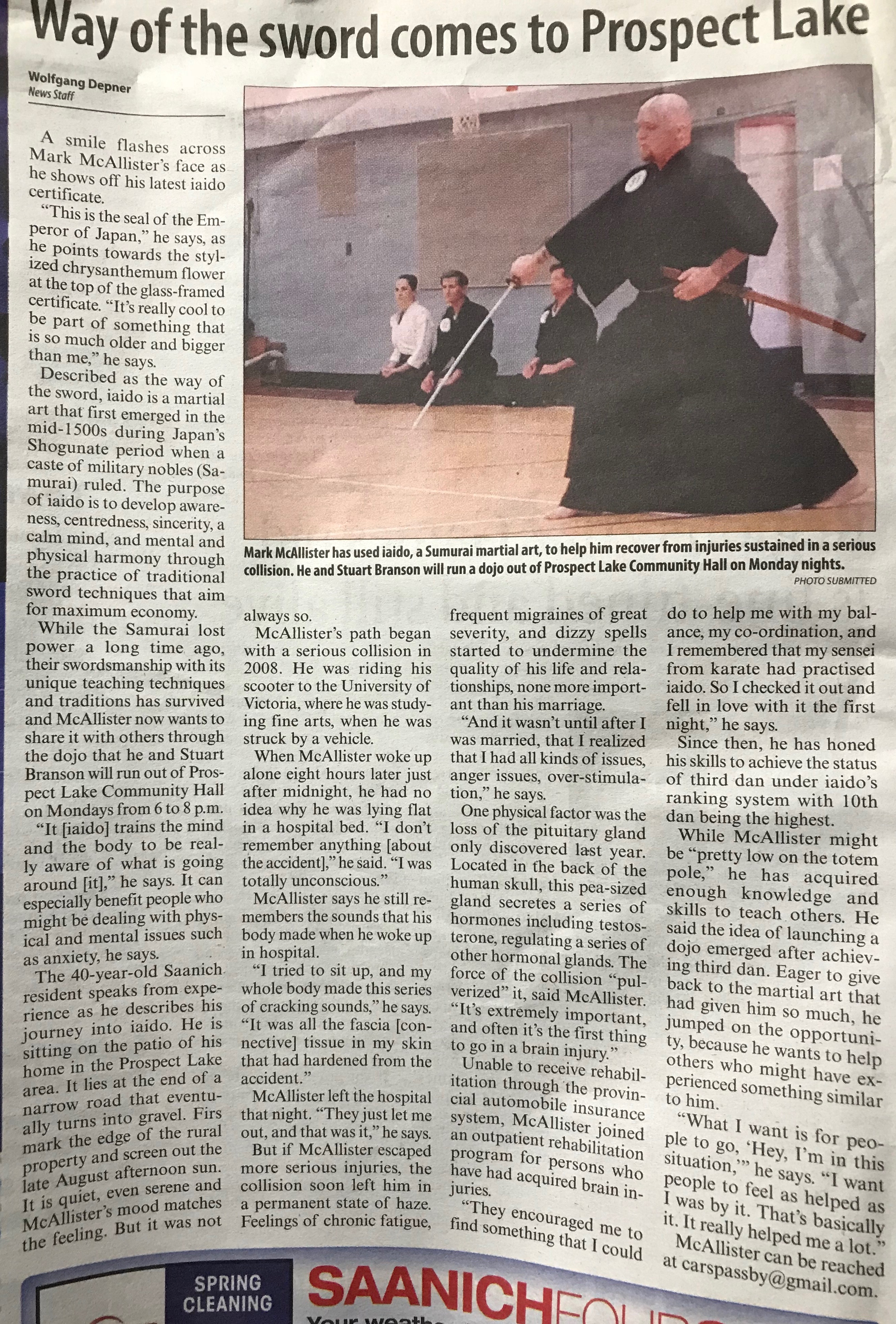 Mark McAllister, 3rd dan ZNIR, was recently featured in an interesting article by the local Saanich newspaper.