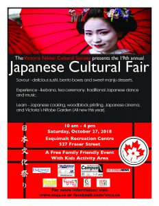 We will have the pleasure of demonstrating again at the Victoria Nikkei Cultural Society Fair, October 27, 2018, at the Esquimalt Recreation Centre.
